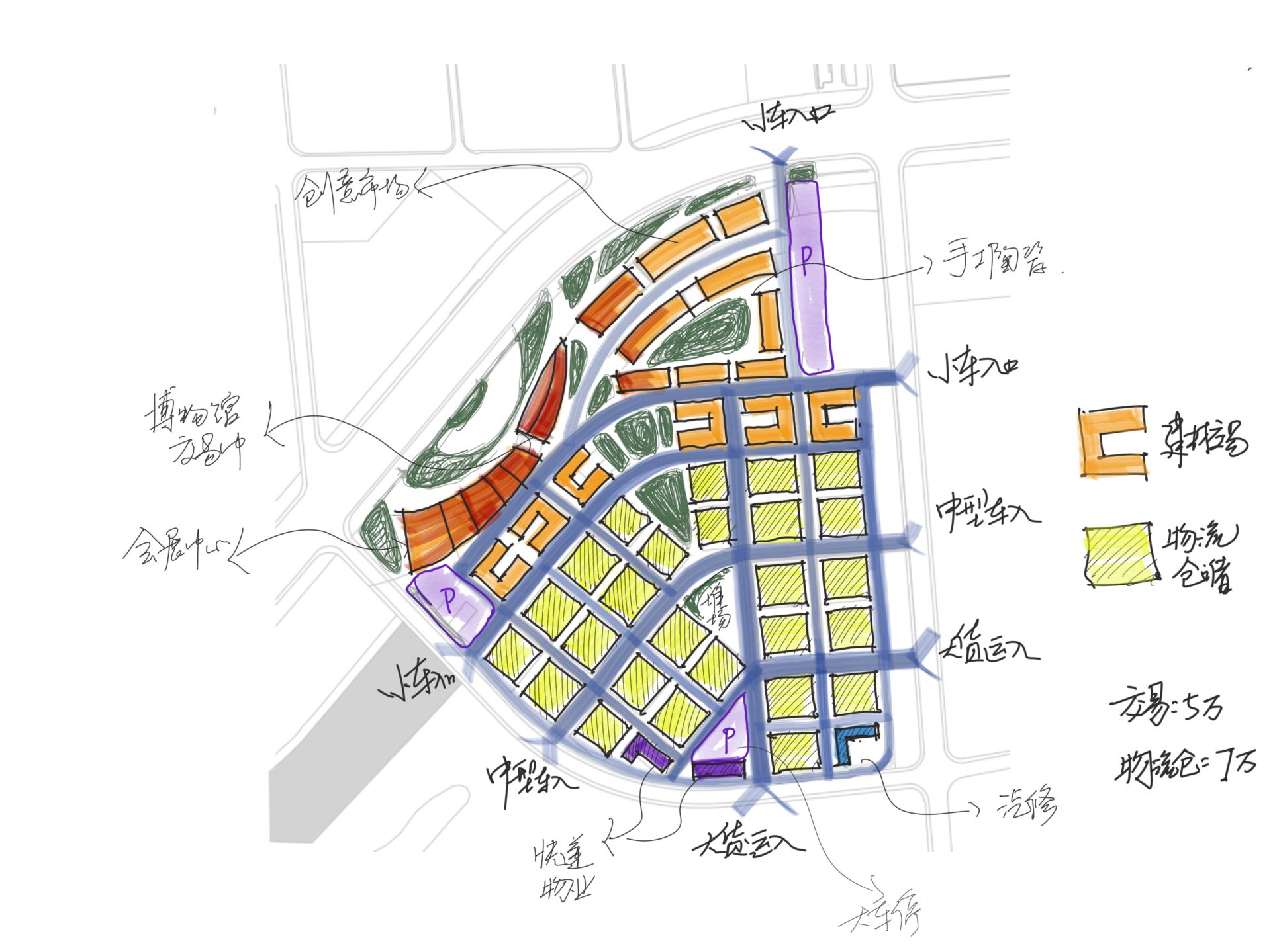 藤县中和陶瓷产业园方案及深化设计涵盖了陶瓷博览中心区、文创街区、交易市场区以及物流仓储区;是一个占地面积大,功能齐全、流线复杂的综合产业园区。科学规划,合理高效是园区的重点。我们用文创展示、交易市场、物流货运三个层次划分功能区,展示在前,物流靠后,解决大中小车的进出和流线;解决商户、客流、货流的高效组织;利用模块化、单循环的方式控制仓储物流区的进出关系,保证有序及安全。